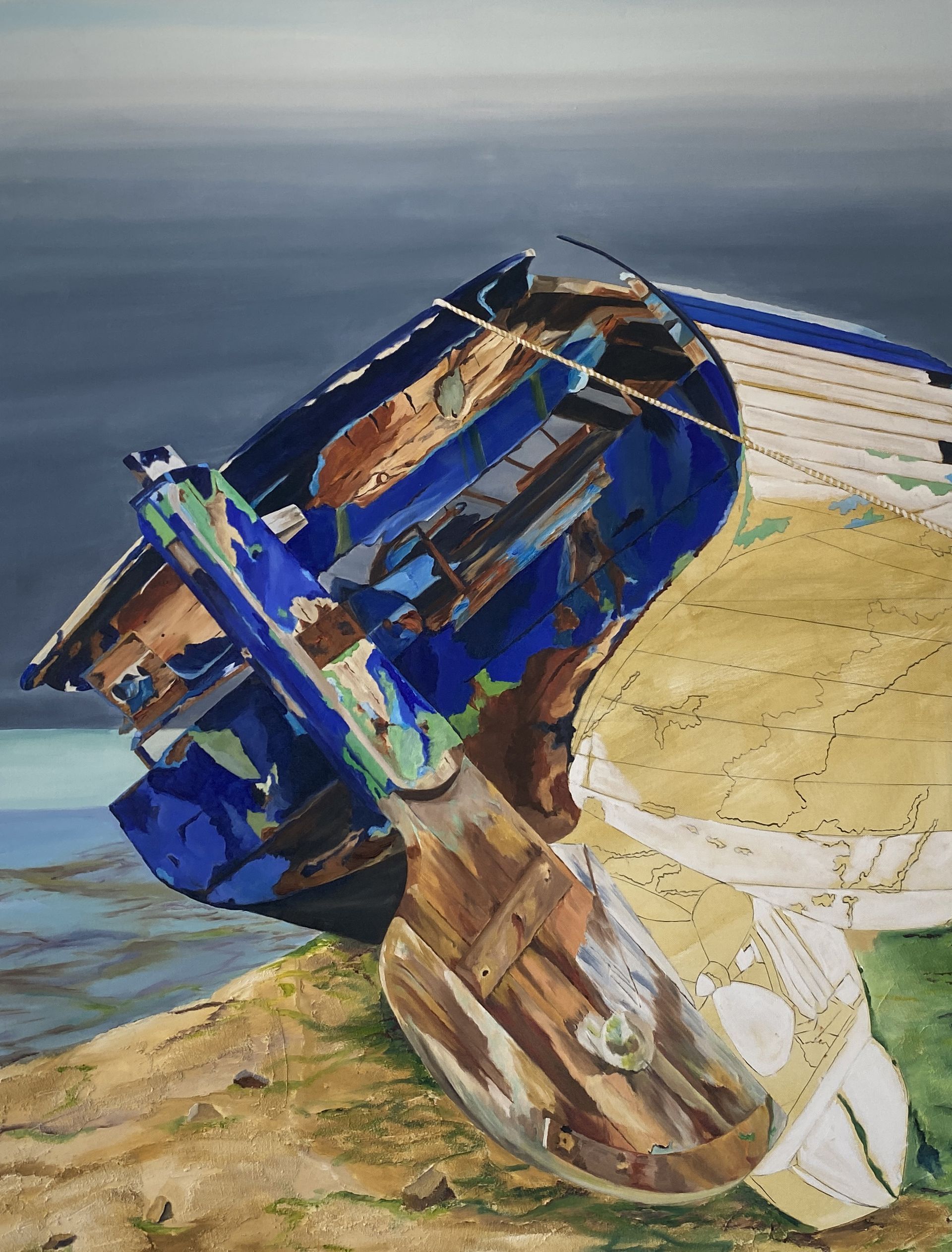 Série épaves "Gabriel" 116 x 89 cm . Quelques étapes avant les dernières couches de Glacis pour parfaire les ombres et ajuster les profondeurs de couleurs